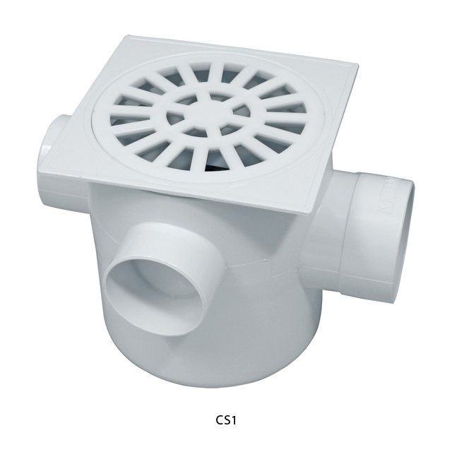 Caixa sifonada com sifão interno removível ∅ 10,5 x 12,0 cm, 3 entradas (∅ 40 mm) e 1 saída (50 mm).