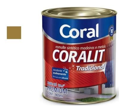 Tinta esmalte para pintar madeira e metal com acabamento ouro dourado..
