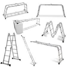 Escada de Alumínio Multifuncional 4 x 4 Worker. Altura Aberta: 1,52m, Altura Fechada: 1,265m, Altura Estendida: 4,70m. Peso 12kg