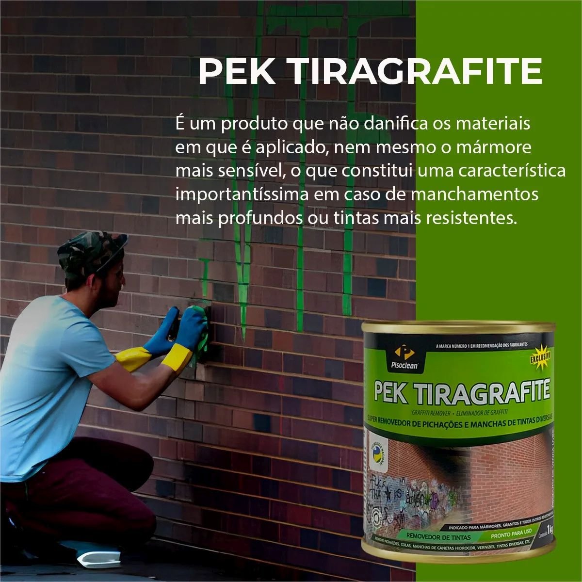 Pek Tiragrafite foi especialmente desenvolvido para a remoção de Pichações e manchas de tintas em revestimentos. Remove pichações, manchas de tintas ou de canetas de todas as cores sem causar nenhum dano aos materiais. Remove massa plástica seca (Poliéster), coisa que nenhum outro produto consegue fazer