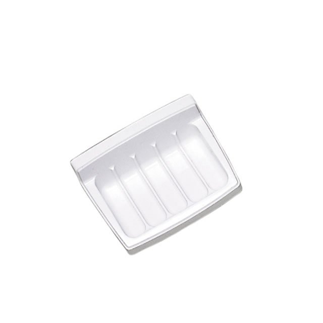 Saboneteira plástica de parede. Acompanha buchas e parafusos para fixação.