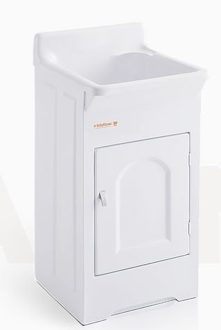 O modelo 25 litros possui porta central, divisão interna, tábua à esquerda com dezessete gomos e suporte para sabão.
